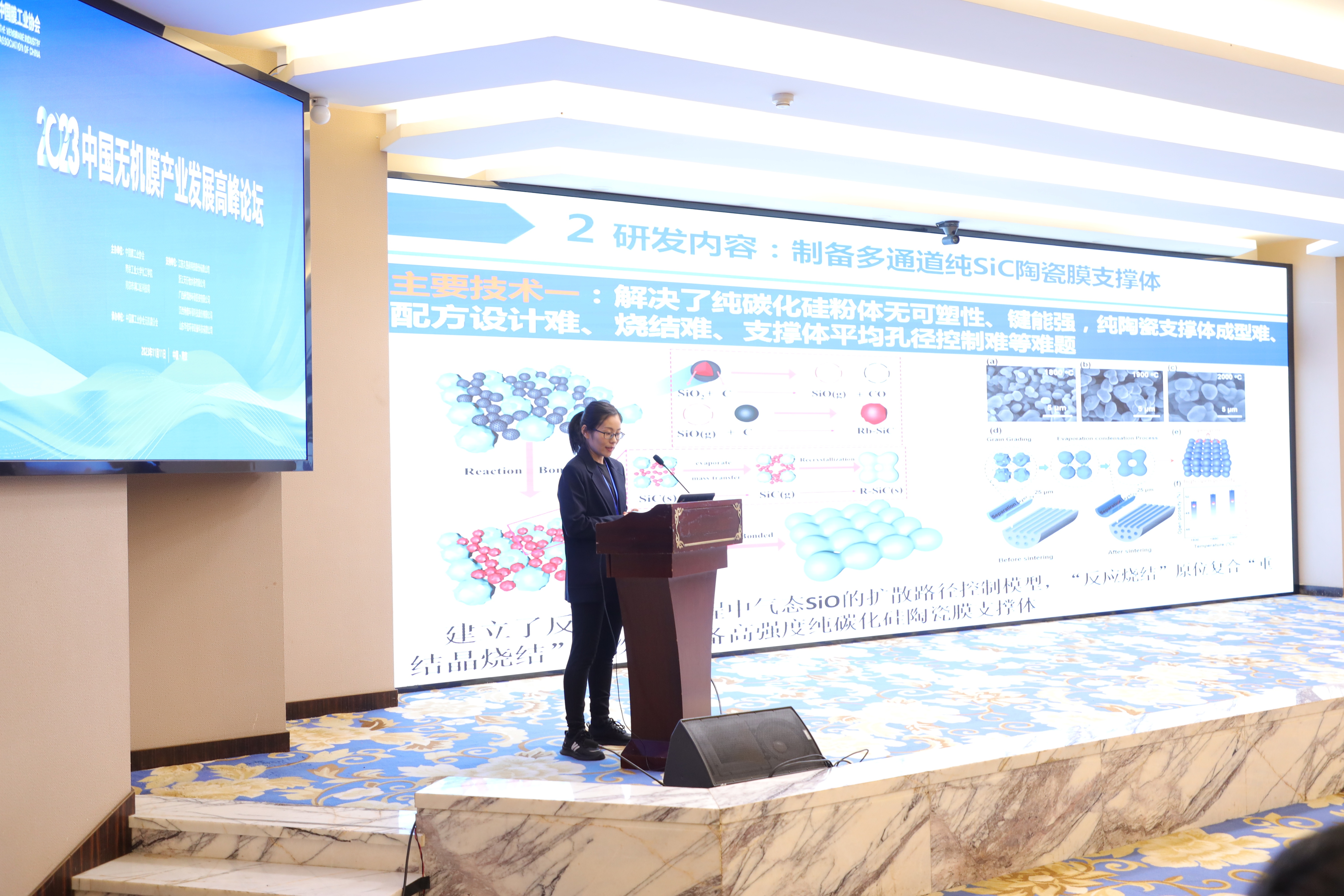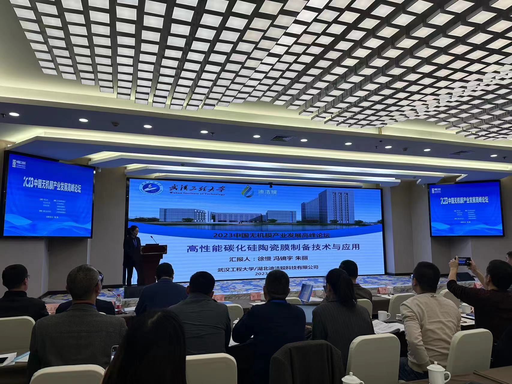 2023年11月11日,2023年中國無(wú)機膜產(chǎn)業(yè)發(fā)展高峰論壇在南京順利召開(kāi)。湖北迪潔膜研發(fā)團隊(朱麗教授)就碳化硅陶瓷膜的生產(chǎn)及應用技術(shù)做了專(zhuān)題報告。